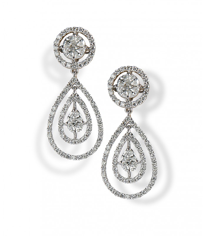 Pendientes largos con movimiento en oro blanco con diamantes talla brillante 2,64 KK.